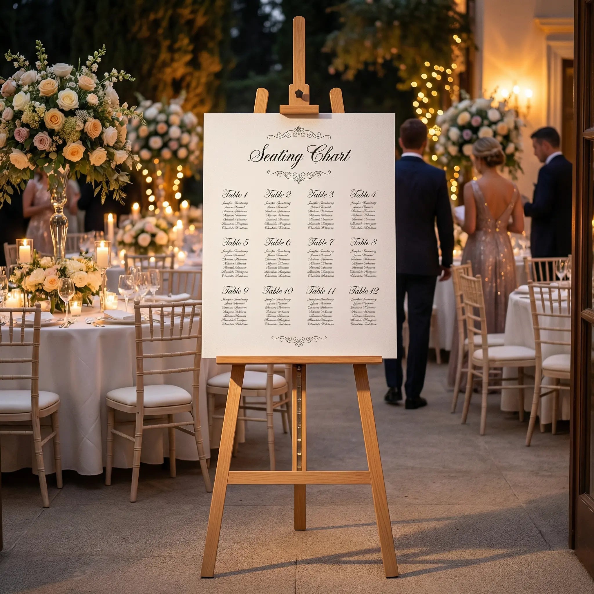 Le chevalet mariage est conçu pour mettre en valeur les éléments importants de votre réception. Plan de table, panneau de bienvenue, menu ou signalétique décorative trouvent leur place sur un support stable et élégant qui attire naturellement le regard des invités.